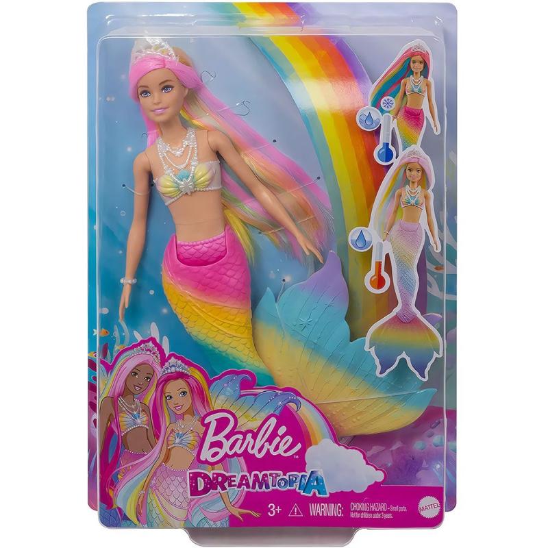 Mergulhe na magia dos contos de fadas com a boneca Barbie Dreamtopia Magical Rainbow Mermaid Barbie. Essa boneca sereia apresenta um estilo de fantasia neon deslumbrante com uma tiara de arco-íris, cauda multicolorida e corpete inspirado no mar. Mas a melhor parte é quando você a mergulha em água morna: o cabelo, o corpete e a cauda mudam instantaneamente, revelando um arco-íris de lindos tons pastéis. Depois, na água gelada, ela volta à sua aparência original para reviver a transformação novamente. Prepare-se para mergulhar em aventuras subaquáticas encantadoras com essa incrível boneca Barbie.