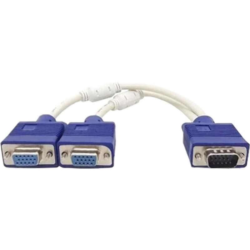 Tipo de Conector: Cabo VGA em Y com 1 conector VGA macho e 2 conectores VGA fêmea, projetado para duplicar o sinal de vídeo analógico.