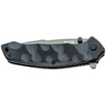 A natureza assistida da faca significa que o desdobramento da lâmina é rápido e fácil, simplesmente pressionando a aba da barbatana ou movendo os botões do polegar.