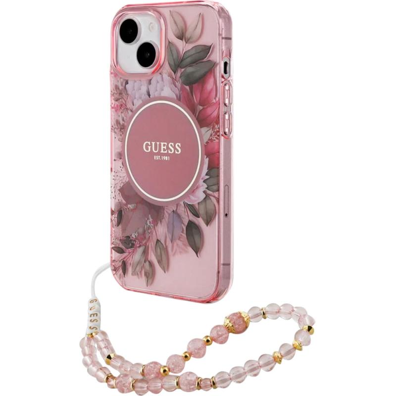 Capa com cordão Guess para iPhone 15 GUHMP15SHFWBRCESP – Pink