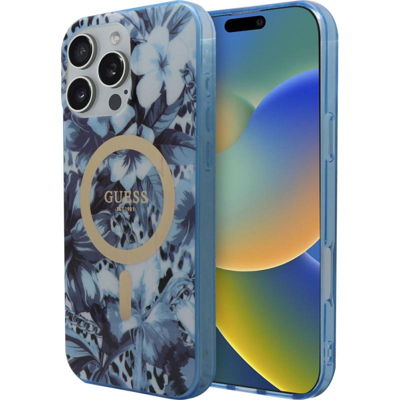 Capa Guess para iPhone 16 Pro Max GUHMP16XHJFCWB – Flowers Blue