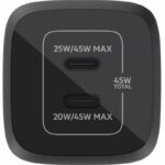 Carregue um laptop ou carregue rapidamente um iPhone e um dispositivo Samsung ao mesmo tempo com o carregador de parede duplo USB-C compacto de 45 W.
