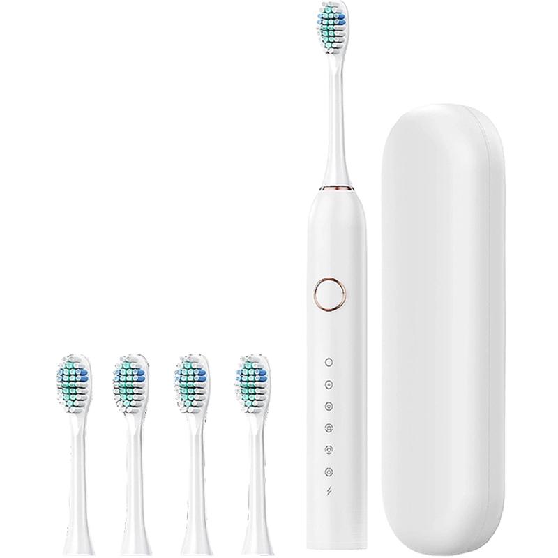 Cerdas Dupont, longa duração da bateria, motor acústico, 6 modos de funcionamento: Clareamento, Limpeza, Cuidado, Suavidade, Pulso, Polimento, temporizador de 2 minutos.