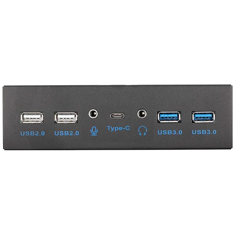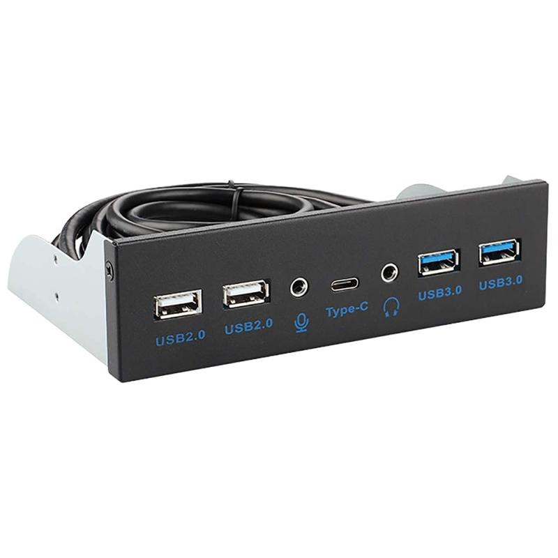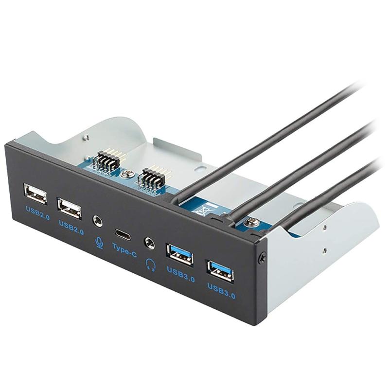 Hub de Painel Frontal 5.25″ USB3.1 Gen2 Type-C/USB 2.0/Jack 3.5mm Preto