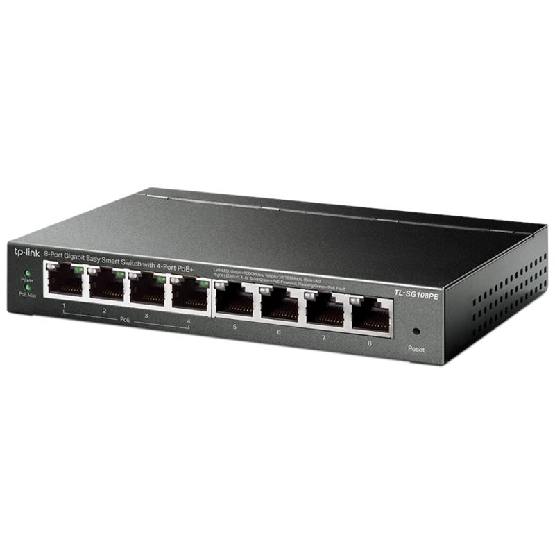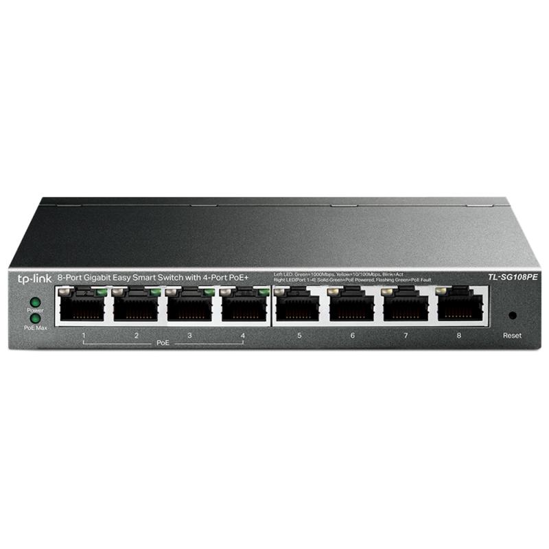 TP-Link TL-SG108PE 8 portas Gigabit Easy Smart Switch com 4 portas PoE.