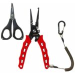 * Alicate de pesca multifuncional e tesoura de corte.