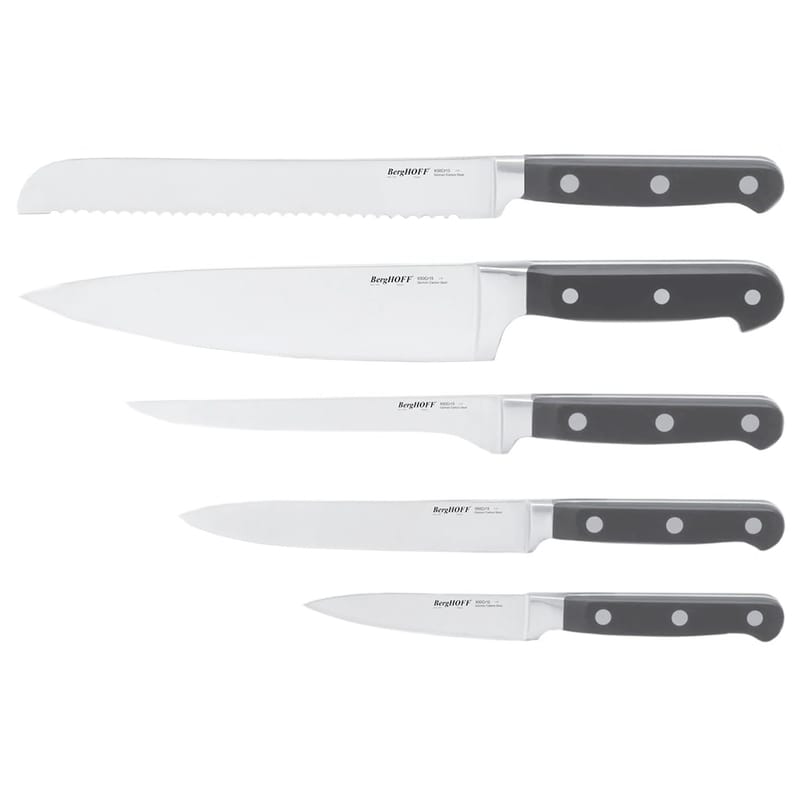 O conjunto de facas para bife Contempo de 5 peças é um conjunto profissional da BergHOFF e é feito de aço inoxidável da mais alta qualidade para resistir à corrosão e é combinado com cabos ergonômicos curvos com rebites triplos para equilíbrio excepcional e corte preciso.