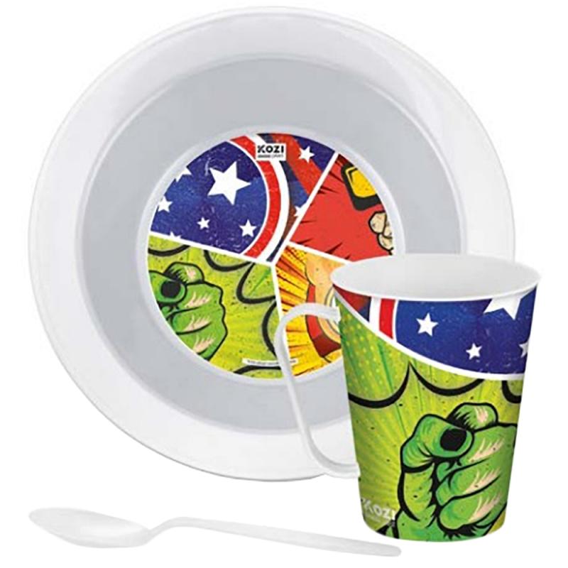 Kit Lanche Label de Plástico Redondo Kozi Plast Heróis 8504H – (3Pcs)