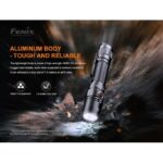 O Fenix PD35 V3.0 é a edição atualizada do Fenix PD35 V2.0. Para esta nova versão, Fenix adicionou algumas melhorias interessantes. A versão atualizada é ainda mais versátil graças à maior potência de saída de 1700 lúmens e à distância do feixe de 357 metros. É compacto, mas muito sólido e é aprimorado com cinco modos de luz diferentes e outro modo estroboscópico. Esta lanterna funciona melhor com uma bateria de íon de lítio 18650 (incluída), mas também funciona com duas baterias CR123A.