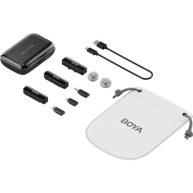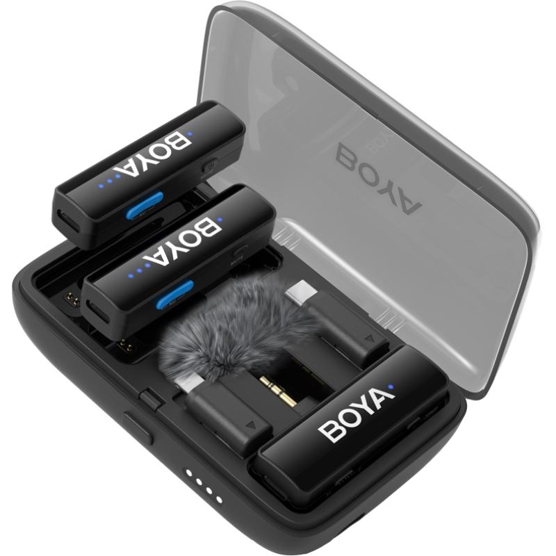 BOYALINK é uma solução 3 em 1 para necessidades versáteis de gravação de áudio de alta qualidade. O receptor possui três adaptadores intercambiáveis: TRS de 3,5 mm, USB-C e Lightning, garantindo compatibilidade universal com câmeras, dispositivos móveis e computadores. BOYALINK também possui emparelhamento automático, cancelamento de ruído com um clique e suporta carregamento durante a gravação, tornando-o ideal para transmissão ao vivo, vlogging, jornalismo móvel e muito mais.