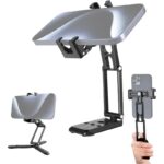 Estabilidade melhorada com pernas divididas ocultas : As inovadoras três pernas divididas (ou combinadas como base) melhoram significativamente a estabilidade em comparação com um suporte de duas pernas, garantindo gravações mais estáveis e sem desfoque. O suporte para telefone alargado, com braçadeira ajustável, botão de ajuste manual e almofada de borracha antiderrapante, oferece uma fixação segura e evita quedas acidentais.
