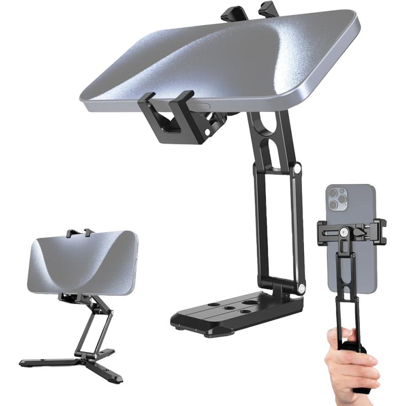 Dobramento triplo expansível e ângulos flexíveis : O design melhorado do dobramento triplo inclui maior altura de abertura e uma empunhadura maior para maior conforto. O comprimento pode ser estendido de 80 mm a 260 mm, a altura máxima expandida é de 180 mm e cada ângulo de dobramento admite ajustes de 310°, 360° e 180°. Com um pivô giratório de 360° na parte inferior, permite colocar facilmente a câmera do telefone em posições de disparo superiores, verticais e outras.