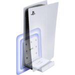 O suporte vertical é aparafusado diretamente no seu PlayStation 5 e é feito de um PC premium com cores correspondentes.