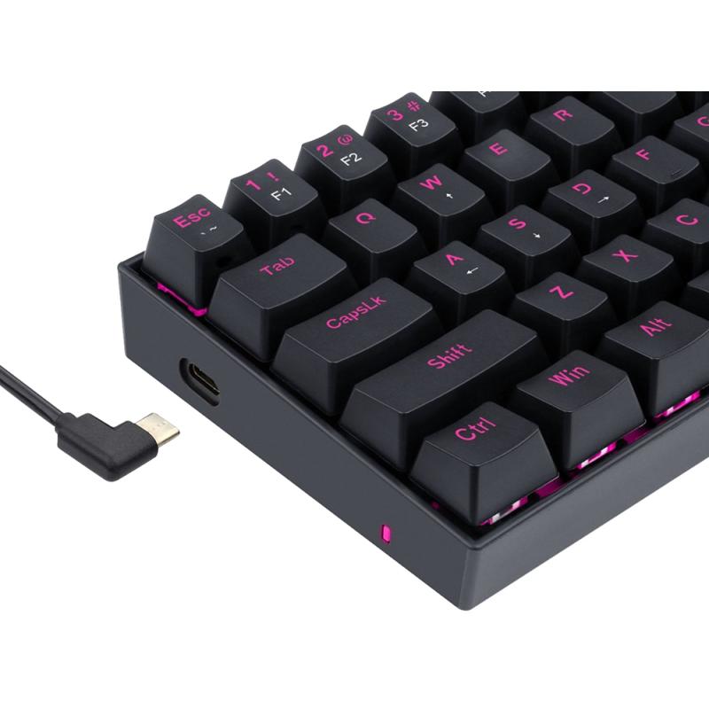 O tamanho compacto é ideal para aqueles com espaço mínimo ou apenas para jogadores que não precisam dos botões adicionais de um teclado para jogos de tamanho normal. As teclas de injeção de disparo duplo são construídas para durar, permitindo a passagem de luz suficiente para os LEDs retro iluminados de cor única abaixo de cada tecla.