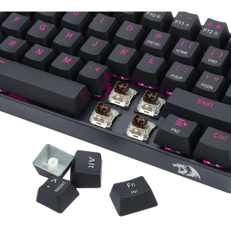 As tampas das teclas e os interruptores podem ser facilmente trocados com a chave e o extrator de interruptor incluído. As próprias teclas também apresentam N-key rollover, o que permite que seus pressionamentos de tecla sejam detectados simultaneamente, não importa quantas teclas sejam pressionadas ao mesmo tempo.