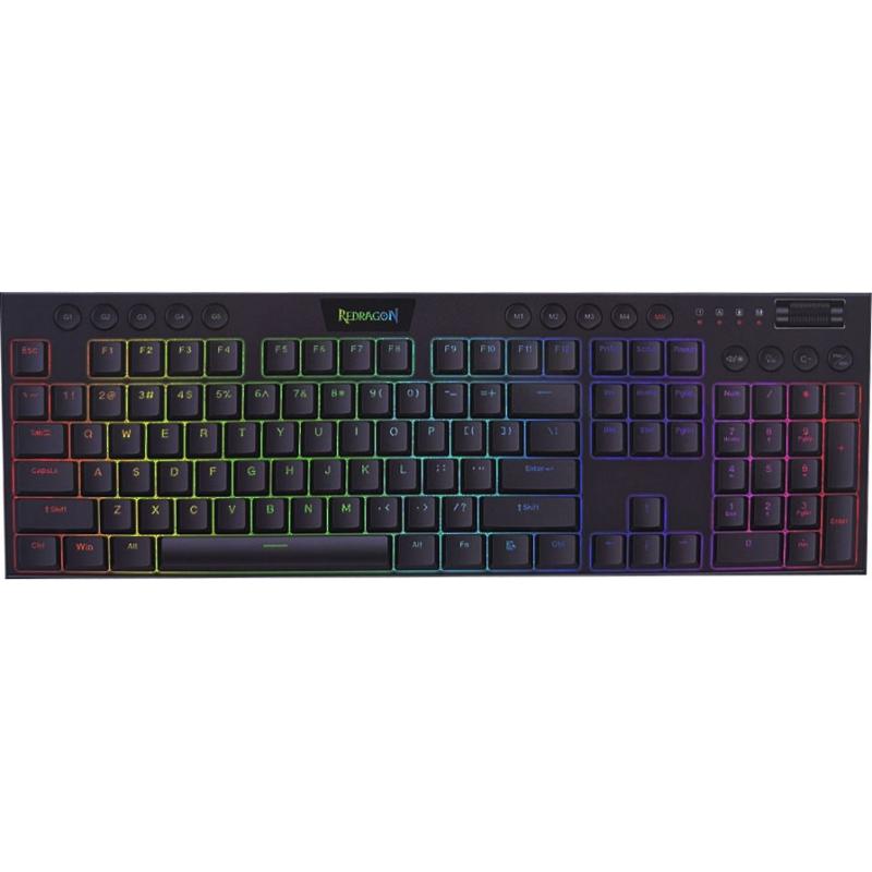 Teclado Gamer Redragon Horus K618-RGB (Inglês - 3 Modos) – Switch Vermelho de Perfil Baixo